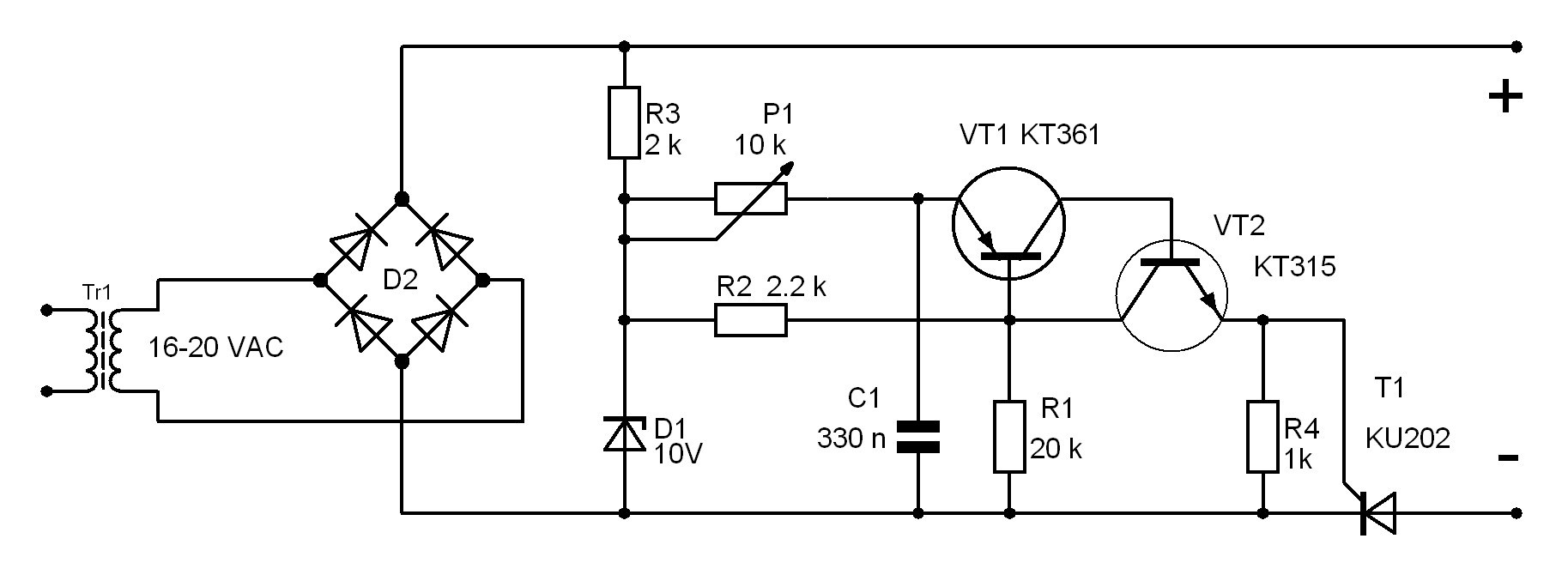აკუმულატორის დამუხვის დენის მარტივი რეგულატორი.